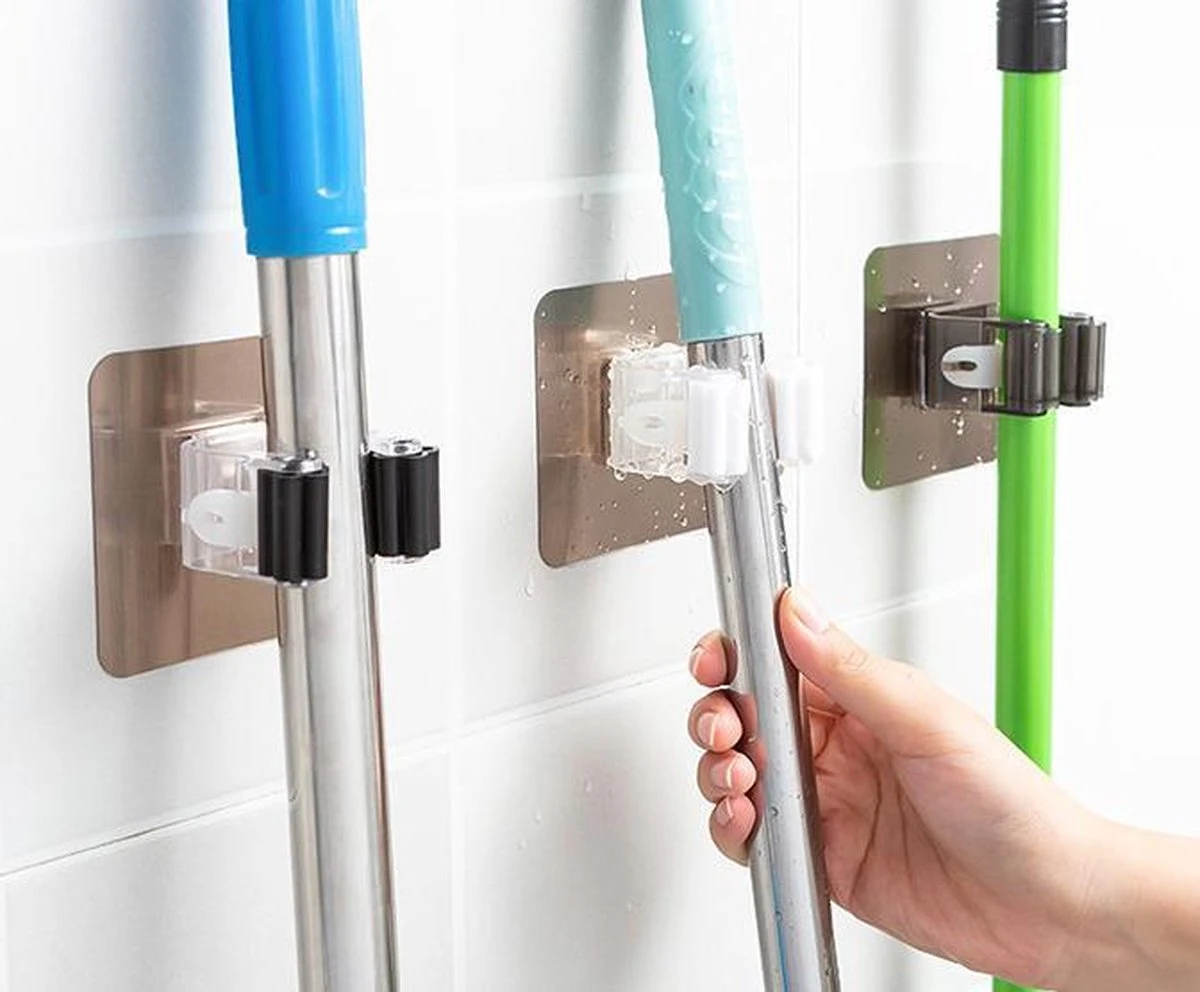 Bezem Houder – Zelfklevend – Zilverkleurig