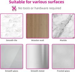 Opmerking: De zelfklevende mop bezem houder is geschikt voor hout, glas, keramische tegels, metalen oppervlakken, enz, maar niet geschikt voor behang, geverfde muren en oneffen oppervlakken, enz.