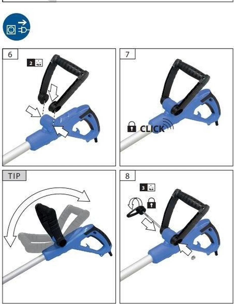 - Min. werkhoogte van de handgreep: 890 mm